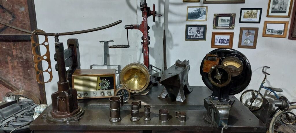 Ya en 1912 y 1913 enviaba cartas a Buenos Aires haciendo consultas mecánicas. Esos documentos todavía se conservan. Y no son un detalle menor: muestran que estamos hablando de uno de los primeros talleres de la provincia. En 1946 finalmente pudo construir el edificio. Y muchas de las herramientas originales, incluido su banco de trabajo, siguen ahí.